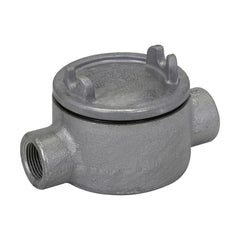 Eaton Crouse-Hinds series Condulet GUA conduit outlet box with cover, 3" cover opening diameter, Feraloy iron alloy, C shape, 3/4"