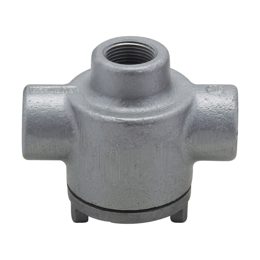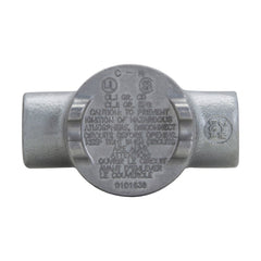 Eaton Crouse-Hinds series Condulet GUA conduit outlet box with cover, 3" cover opening diameter, Feraloy iron alloy, D shape, 1/2"