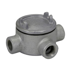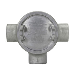 Eaton Crouse-Hinds series Condulet GUA conduit outlet box with cover, 3-5/8" cover opening diameter, Copper-free aluminum, T shape, 1-1/4"