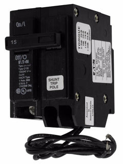 Eaton BR thermal magnetic circuit breaker,Type BR 1-Inch plug-on shunt trip circuit breaker,15 A,10 kAIC,Single-pole,120/240V,BR,#14-4 AWG Cu/Al,BR,Type BR Loadcenters,Shunt trip included