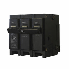BR350 is a 3 Pole, 50 Amp, Plug-In replacement breaker for Eaton Cutler-Hammer CPL/CPM, Challenger PL/PM/PMF, Westinghouse, GL, GLC, WL, WIB, and Novaline panels. One space required per pole.