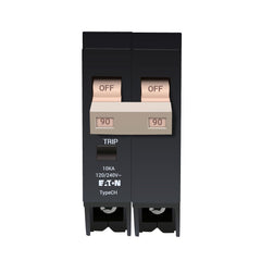 Eaton / Cutler-Hammer Plug-On Circuit Breaker Its Compact And Easy to Install two pole circuit breaker features thermal magnetic molded case for extra protection circuit breaker has a current rating of 90 amps and voltage rating of 120/240 VAC it is a common trip breaker that has AIC rating of 10000 amps and accommodates copper/aluminum wire of size 10 to 1/0 AWG circuit breaker is Ul 489 listed and Csa certified.