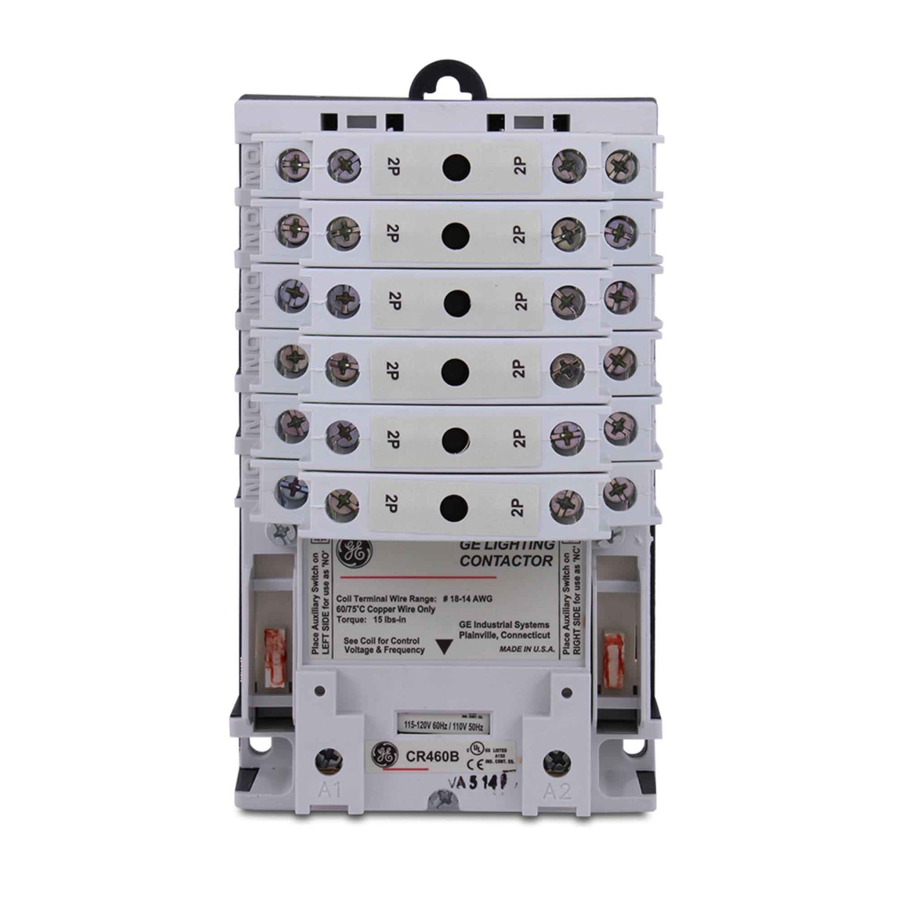 CR463LD0AJA - An electrically held, lighting contactor from General Electric's CR460 Series (Type CR463). It is 12P, 3PH, 30A, 600V, complete with 110V 50Hz or 115-120V 60Hz, open type, and includes a 12N/O auxiliary contact. It is suitable for use with CR460 Series motor control systems.