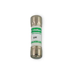 The SPF Solar Protection Fuse series has been specifically designed for the protection of photovoltaic (PV) systems. This family of Midget style fuses (10x38 mm) can safely protect PV (photovoltaic) modules and conductors from reverse overcurrent conditions. As PV systems have grown in size, so have the corresponding voltage requirements. This increase in system voltage has typically been intended to minimize power loss associated with long conductor runs. Standard circuit protection devices are not designed to completely protect photovoltaic panels. However, the SPF series is UL Listed to safely interrupt faulted circuits up to this demanding voltage level.