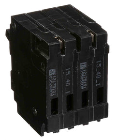 Siemens Q Series, type QT, 2P quad, 1PH, 15/40A/15, 120/240V, 10kA@240V, standard interrupting capacity, plug-in, LI - Long-Time and Instantaneous trip functions, thermal magnetic molded case circuit breakers