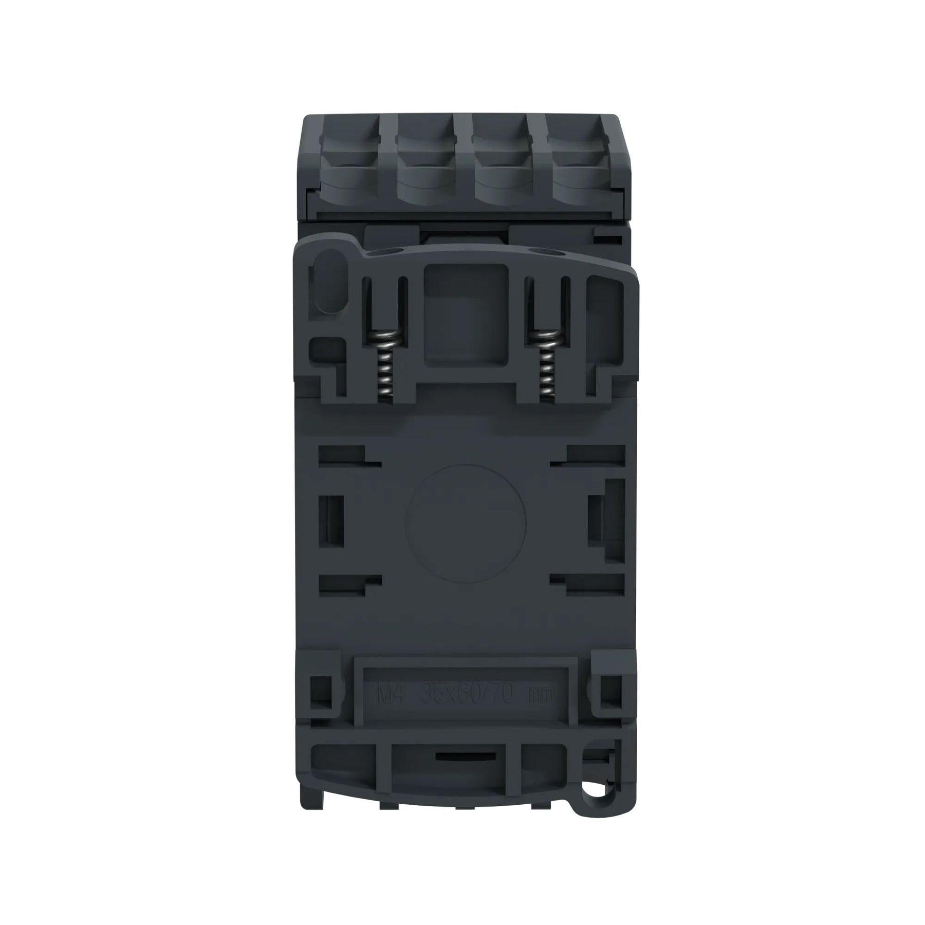 TeSys D contactors have been designed for perfect integration into control systems. They can be used to create motor starters for almost any type of application. TeSys D contactors are available in 13 contactor ratings for inductive motor applications up to 150 full-load amps and resistive loads up to 200 amps. This 4 pole IEC contactor can be mounted on DIN rail or mounted directly to a panel. Contactor has two normally open and two normally closed power contacts. Power contacts have a 40A resistive load rating. Contactor is supplied with a 24 VAC 50/60 Hz coil. Contactor has one normally open and one normally closed auxiliary contact built-in as standard. The NC contact is mirror certified. Screw clamp terminals are used for load and auxiliary connections. An extensive line of accessories makes it easy to meet the requirements of most applications. The contactor is 4.13 inches tall, 1.77 inches wide and 3.90 inches deep. It weighs 0.94 lbs. Contactor is certified to UL, CSA, IEC, CCC, EAC and Marine standards. Contactor also meets the requirements of RoHS/REACh making it a Green Premium product.