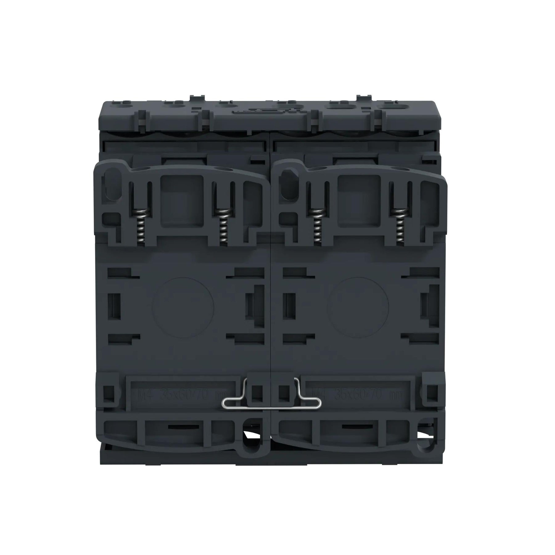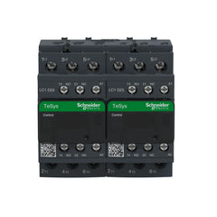 LC2D25B7 is a 3-pole TeSys D reversing contactor from Schneider Electric for motor applications. Rated 25A AC-3 11kW@400V, it includes a 24V 50/60Hz AC coil, 2NO+2NC aux contacts, a mechanical interlock. LC2D25B7 is a 3-pole TeSys D reversing contactor from Schneider Electric for motor applications up to 11kW@400V. It includes a 24V 50/60Hz AC coil and 2NO+2NC built-in auxiliary contacts, NC mirror certified. Compact, DIN-rail mounting, with mechanical interlock and pre-wired reversing circuit, it procures reliability and durability. Available worldwide, it is multi-standards certified (IEC, UL, CSA, CCC, EAC, Marine) and Green Premium compliant (RoHs/Reach). Compact product, 90mm wide, for DIN-rail and panel mounting. Assembled with mechanical interlock and pre-wired reversing circuit. Clear separation between power and control circuits, easy front access to coil and auxiliary contacts connections. Equipped with a 24V AC coil that can be supplied at 50Hz or 60Hz. Provides 4 built-in auxiliary contacts 2NO + 2NC, NC contacts are mirror certified suitable to be included in the control of safety systems. High electrical durability, guaranteed for 2 million cycles at 25A AC-3 440V, for demanding motor switching applications. Robust design with high making and breaking capacities up to 20 In. Connection by screw clamp terminals.