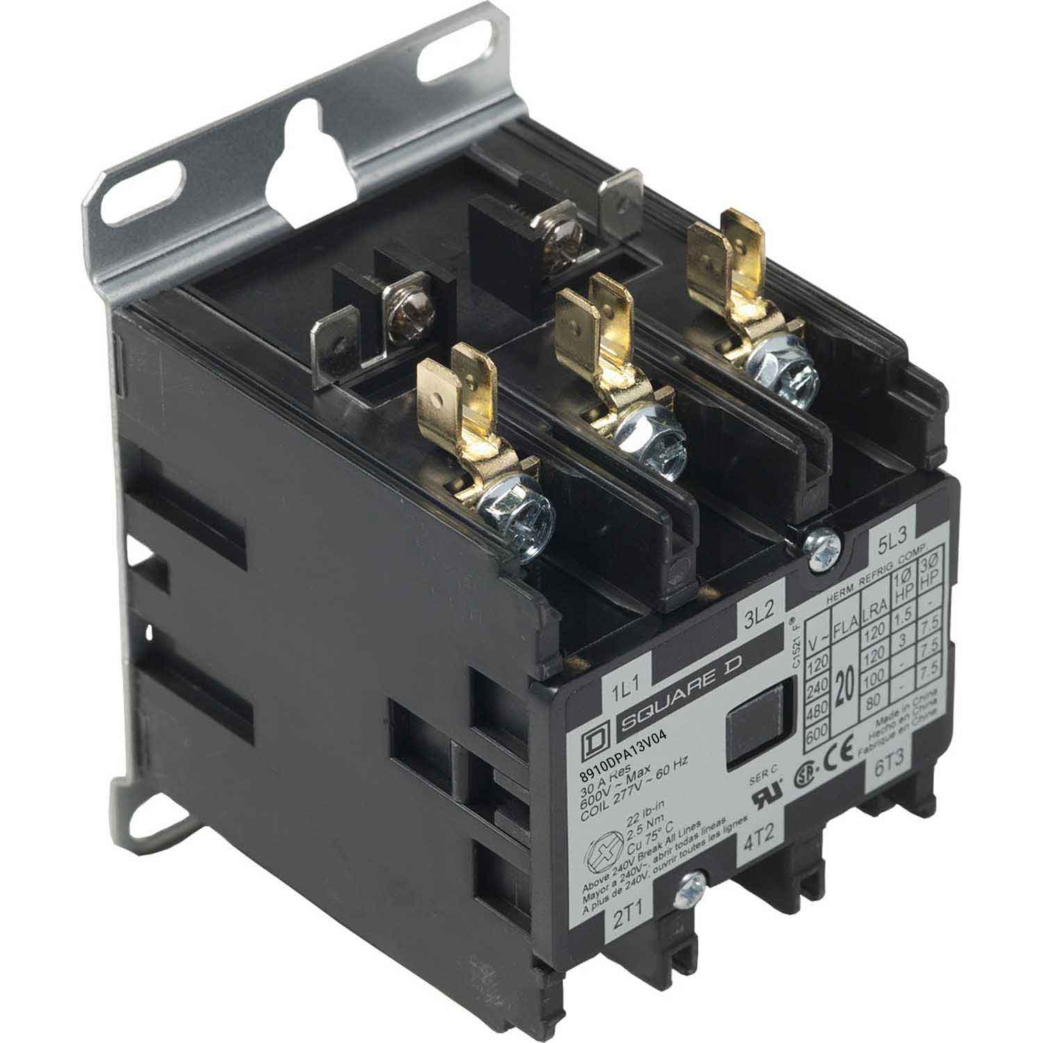 8910DPA13V04, Square D, Class 8910, type DPA, definite purpose contactor, 5HP @ 230V, 7.5HP @ 460/575V, 3P, 3PH, 20A, 600V, complete with 277V coil