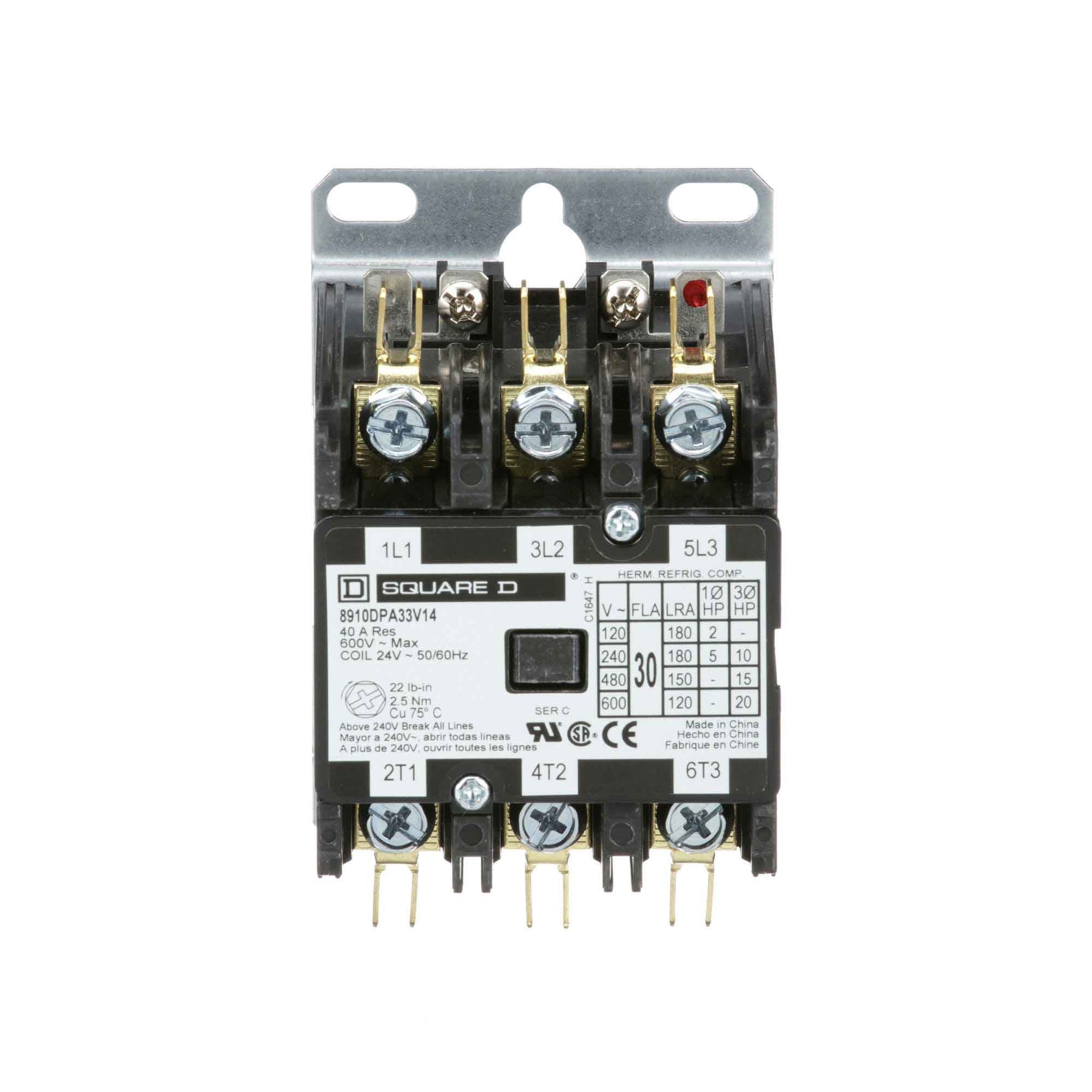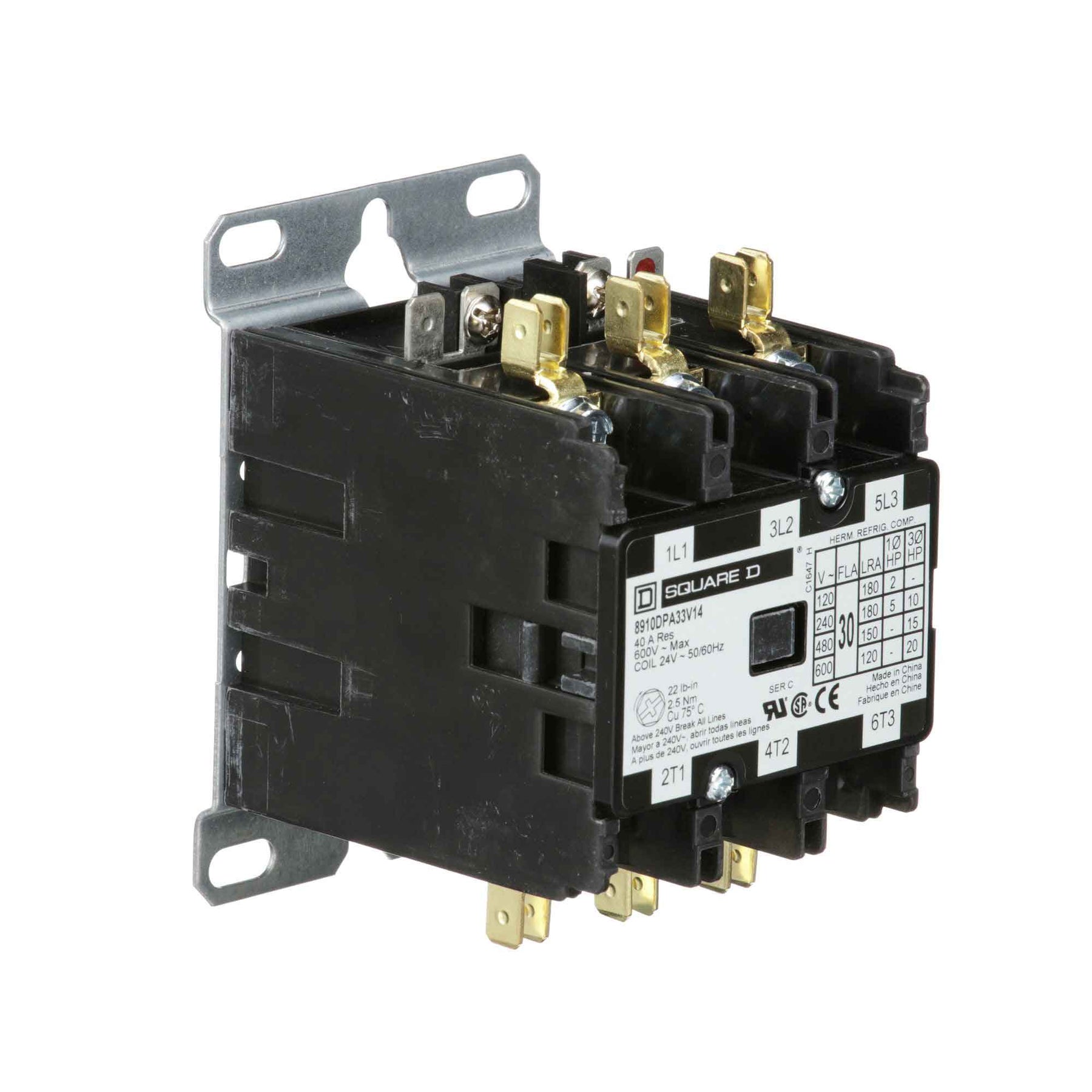 8910DPA33V14, Square D, Class 8910, type DPA, definite purpose contactor, 10HP @ 230V, 15HP @ 460/575V, 3P, 3PH, 30A, 600V, complete with 24V coil