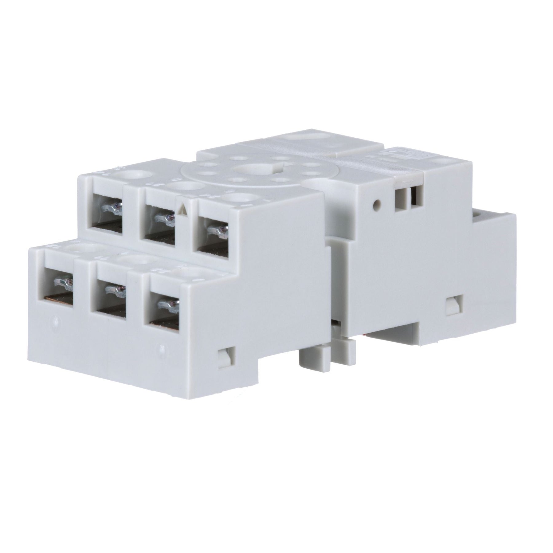 8501NR plug in relay sockets are designed for the proper wiring of 8501K plug in relays. This socket can be mount on 35mm DIN rail or can be mounted directly to a panel. The 8501KPR12 and 8501KPDR12 relays and 9050JCK timers will plug into this relay socket which is designed for 8 tubular pins. The socket terminals have pressure wire clamps for a good secure connection. To save panel space this socket has stacked terminals. 8501NR plug in relay sockets are UL component recognized and CSA certified.