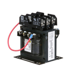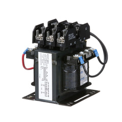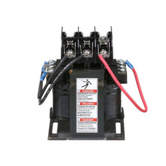 Control power transformers from Schneider-Electric set the industry standard for design innovation and performance. They are designed with low impedance windings for excellent voltage regulation and can accommodate the high inrush current associated with contactors, starters, solenoids, and relays. A variety of designs are available to meet the diverse needs of panel builders and machinery OEMs. The versatility of our control transformer line offers unparalleled options for design engineers. Type TF and EOF transformers consist of two primary fuse blocks and one secondary fuse block, a configuration meets the majority of overcurrent needs by panel builders and machinery OEMs. Since the fuse blocks are pre-wired and mounted on top of the transformer, the Type TF and EOF transformers have the same footprint as the Type T and Type EO units, respectively. This industrial control transformer has a power rating, of 150VA and is 1 phase (UL). With a primary voltage of 240 x 480V and a secondary voltage of 120V. This transformer complies to UL, CSA, CE standards. The fuse type for this transformer is CC with a fuse size of 0.41 x 1.50 in and will be mounted on the top of the unit. The temperature rise is rated at 55 °C. Dimensions for the unit are 4.5 in (H)3.75 in (W)3.59 in (D) The winding material is copper. This design frees up space normally used for separate fuse blocks