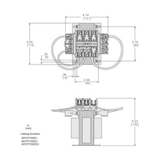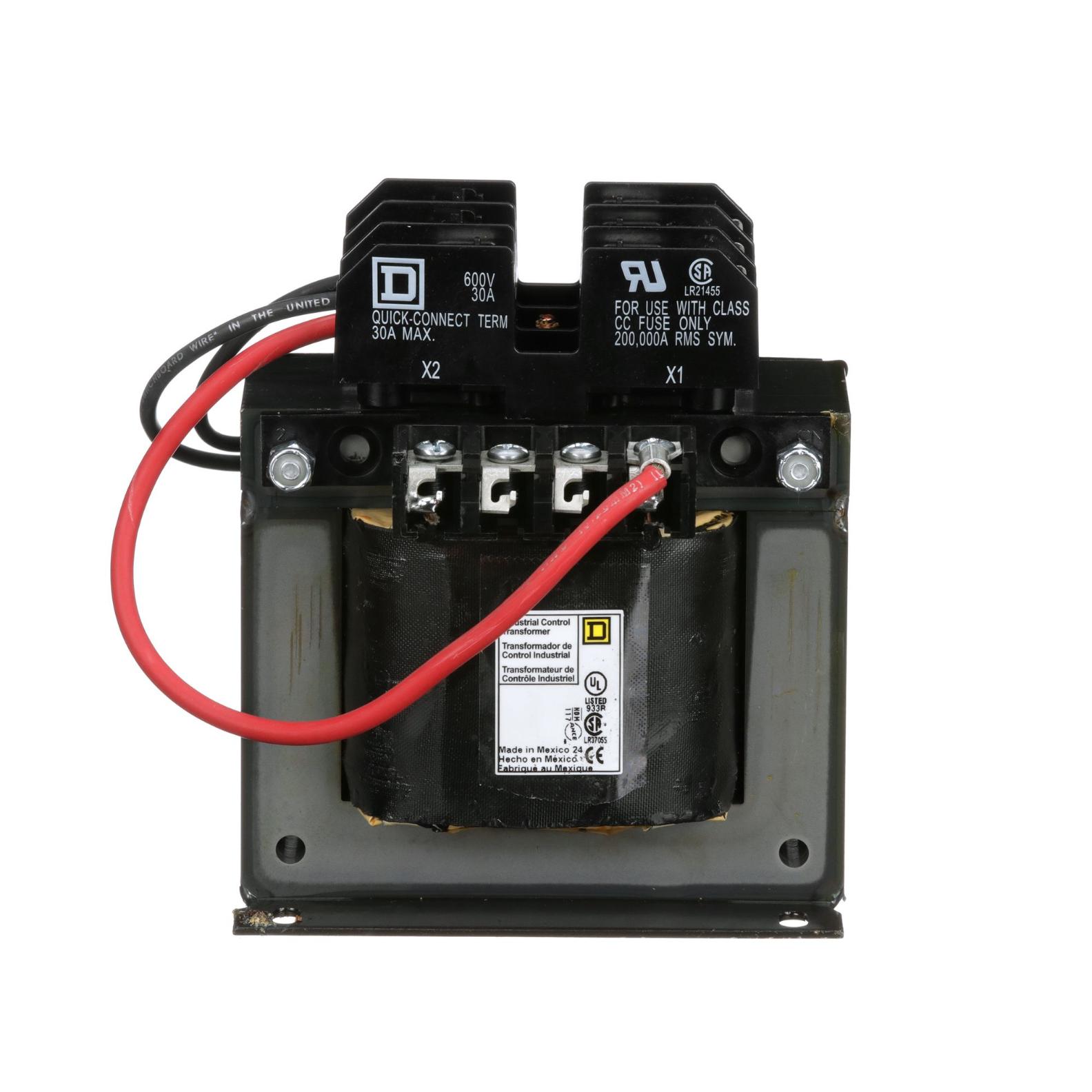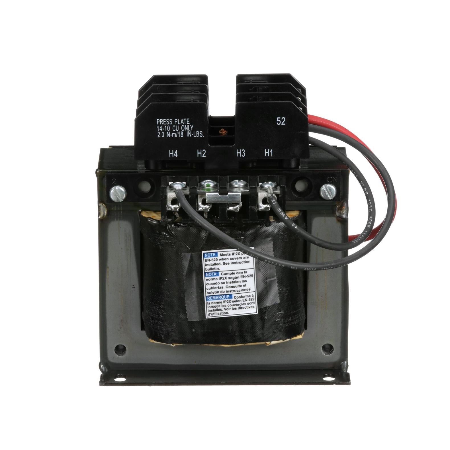 We offer both product lines with factory installed overcurrent protection fuse blocks. Type TF and EOF transformers consist of two primary fuse blocks and one secondary fuse block, a configuration that meets the majority of overcurrent needs by panel builders and machinery OEMs. Since the fuse blocks are pre-wired and mounted on top of the transformer, the Type TF and EOF transformers have the same footprint as the Type T and Type EO units, respectively. This design frees up space normally used for separate fuse blocks. We also have an extensive fuse block offering for custom applications. See the overcurrent section of this catalog for full details. This Industrial Control Transformer has a power rating of 300VA and is 1 phase. This transformer has a 220 x 440V primary voltage and 110V secondary voltage. This transformer complies to UL, CE & CSA standards. Dimensions for this product are 5.13 in (H), 4.5 in (W), 4.74 in (D). This transformer has screw clamp terminals connections. T The material used for this product is copper used in the winding. This product has a compatability for FSC2.