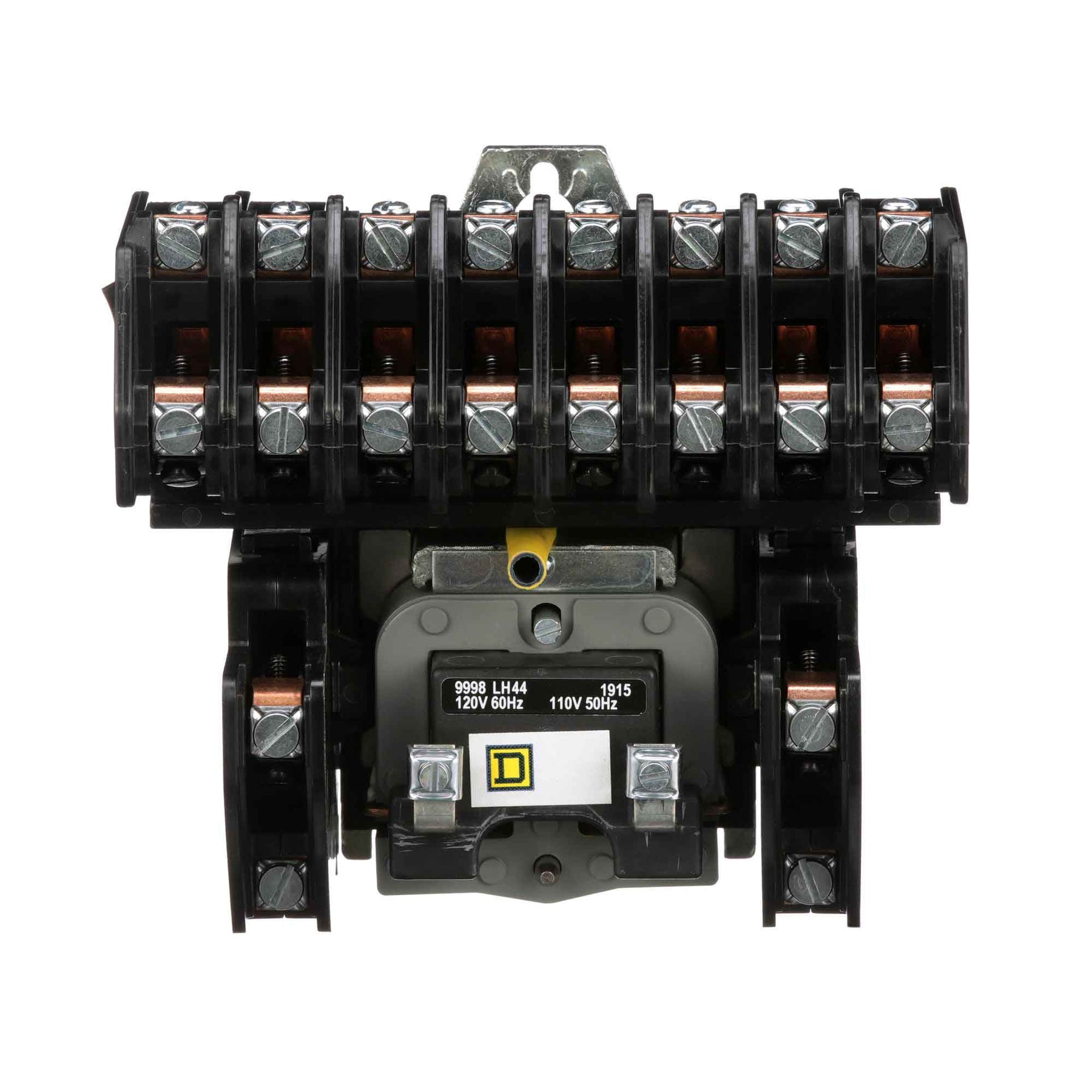 8903LO1000V02, Square D, Class 8903, multipole lighting contactor, electrically held, type L, 10P, 3PH, 30A, 600V, complete with NEMA open type and 110/120V coil