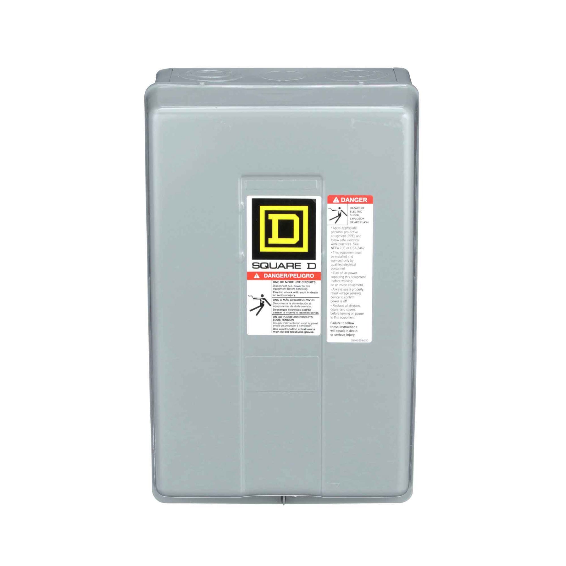 8903LXG40V04, Square D, Class 8903, multipole lighting contactor, mechanically held, type LX, 4P, 3PH, 30A, 600V, complete with NEMA type 1 enclosure and 277V coil