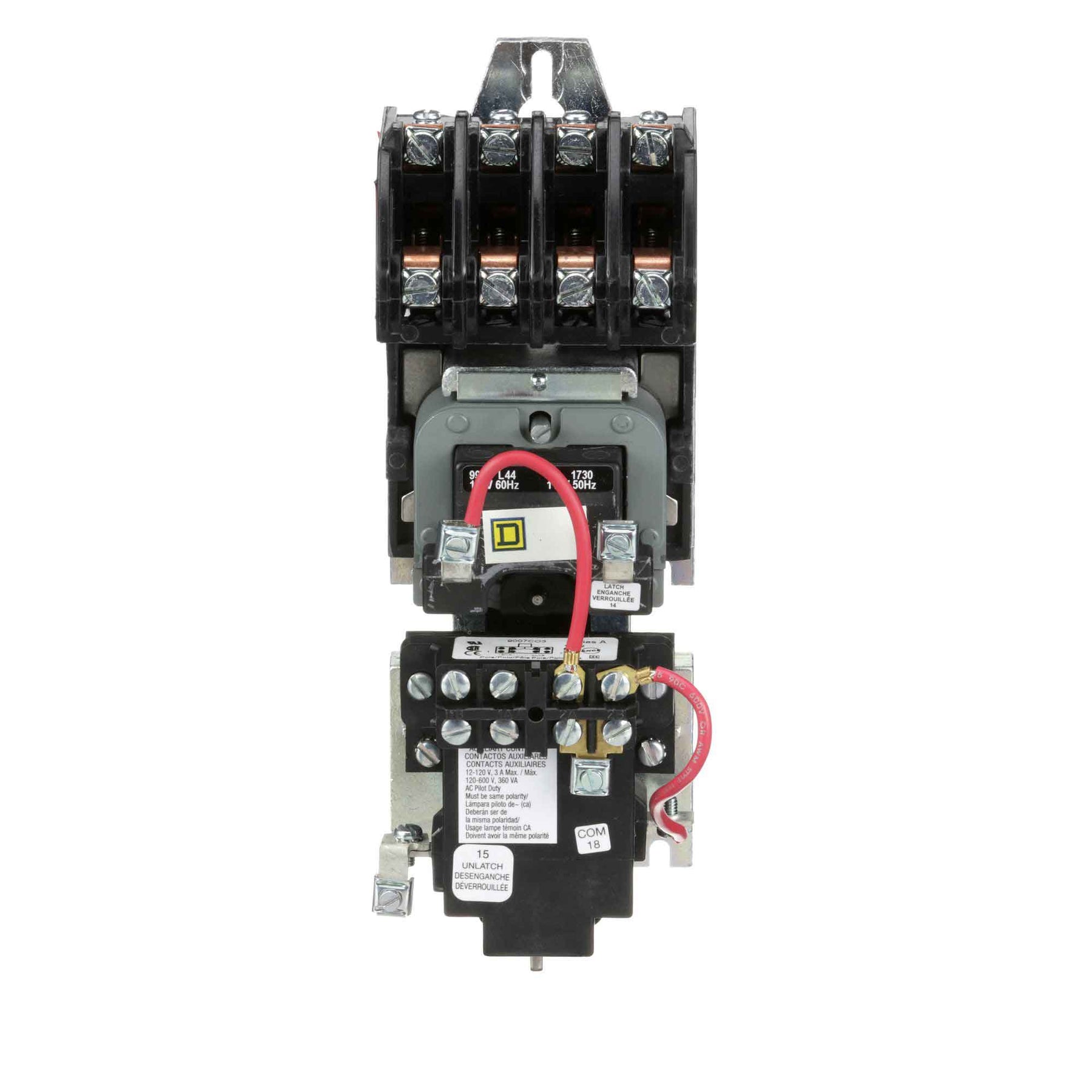 8903LXO40V02, Square D, Class 8903, multipole lighting contactor, mechanically held, type LX, 4P, 3PH, 30A, 600V, complete with NEMA open type enclosure and 110/120V coil