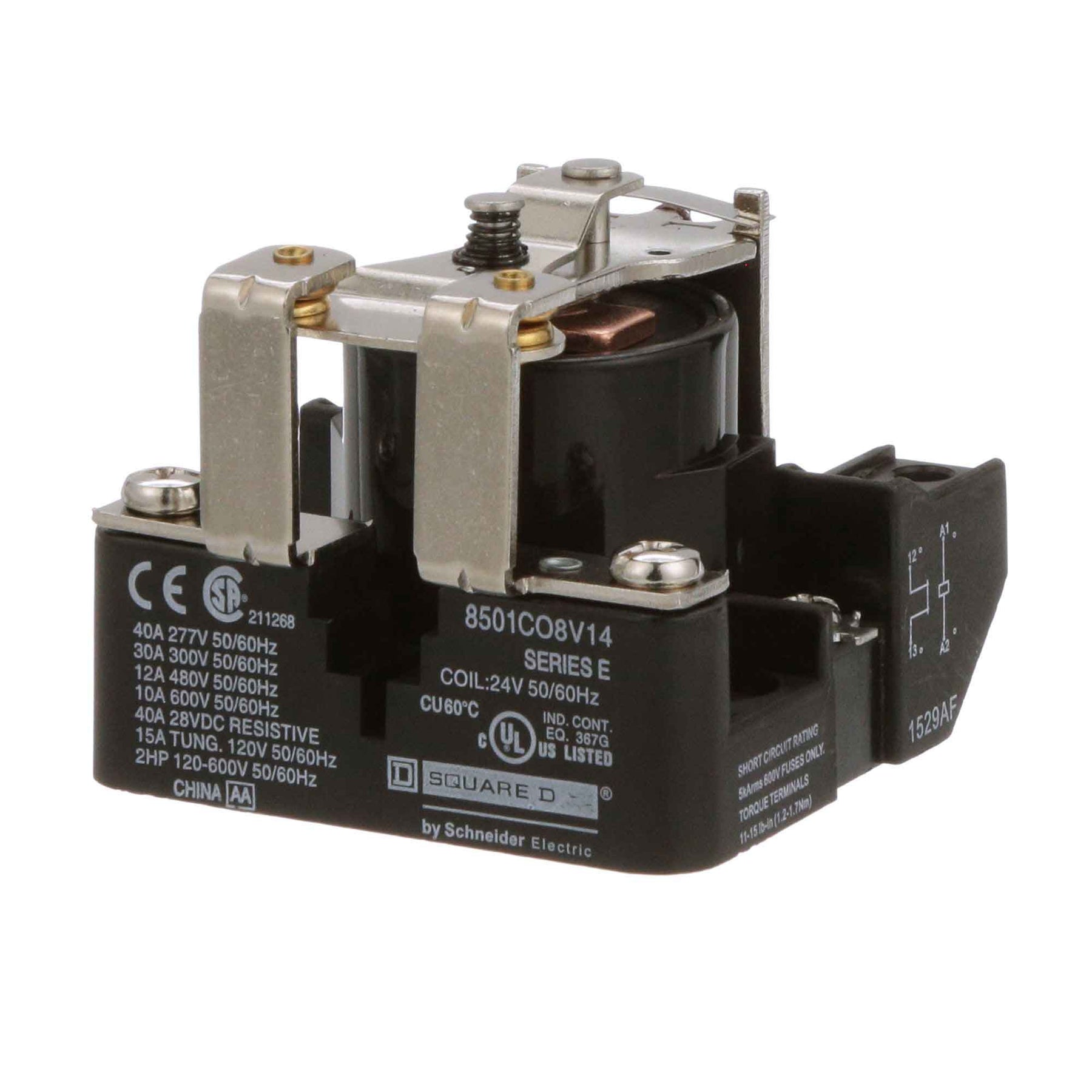 8501CO8V14, Square D, Class 8501, motor control part and accessory, Relays, type C, UL listed, CSA certified, 1 N.C. Fixed contacts, complete with 24 VAC 50/60Hz standard coil, 300V/600V, 30A @ 300Vac, 10A @ 600Vac, suitable for use with Class 8501 motor control systems