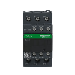 TeSys D contactors have been designed for perfect integration into control systems. They can be used to create motor starters for almost any type of application. TeSys D contactors are available in 13 contactor ratings for inductive motor applications up to 150 full-load amps and resistive loads up to 200 amps. This 25A inductive 3 pole IEC contactor can be mounted on DIN rail or mounted directly to a panel. Contactors have both Horsepower and Kw motor rating for international acceptance. Contactor is rated for 7.5HP at 200-208VAC, 7.5HP at 240VAC, 15HP at 480VAC and 20HP at 600VAC three phase. Contactor is also rated for 2HP at 115VAC and 3HP at 240VAC single phase. When used with a 480VAC up to 60A circuit breaker, this contactor can have a SCCR up to 85kA. When used with up to a 600VAC 60A Class J or CC fuse, this contactor can have a SCCR up to 100kA. Contactor is supplied with a 220 VAC 50/60 Hz coil. Contactor has one normally open and one normally closed auxiliary contact built-in as standard. The NC contact is mirror certified. Screw clamp terminals are used for load and auxiliary connections. An extensive line of accessories makes it easy to meet the requirements of most applications. The contactor is 3.35 inches tall, 1.77 inches wide and 3.62 inches deep. It weighs 0.82 lbs. Contactor is certified to UL, CSA, IEC, CCC, EAC and Marine standards. Contactor also meets the requirements of RoHS/REACh making it a Green Premium product.