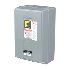 Type S NEMA motor starters are used for full voltage starting and stopping of AC squirrel cage motors. Type S motor starters have ratings up to 810 amperes. This 3 pole NEMA Size 2 non-reversing starter has a 45 ampere rating. This NEMA Size 2 motor starter has 3 phase ratings of 10 HP at 200 VAC, 15 HP at 230 VAC and 25 HP at 460 and 575 VAC. This non-reversing NEMA motor starter has a melting alloy type overload relay that uses Type B thermal units to sense over current conditions. This NEMA starter has a 5 kA maximum SCCR (Short Circuit Current Rating) per UL508A when protected by an appropriate circuit breaker or fuse. Type S motor starters are available with replaceable coils in a wide variety of voltages. This starter has a 440/480 VAC 50/60 Hz operating coil wired for common control. A painted sheet steel NEMA 1 general purpose enclosure is used to protect this starter. Enclosure is 12.69 inches tall, 7.81 inches wide and 6.31 inches deep. A wide variety of accessories are available for Type S starters. Type S non-reversing NEMA motor starters are UL listed and CSA certified.