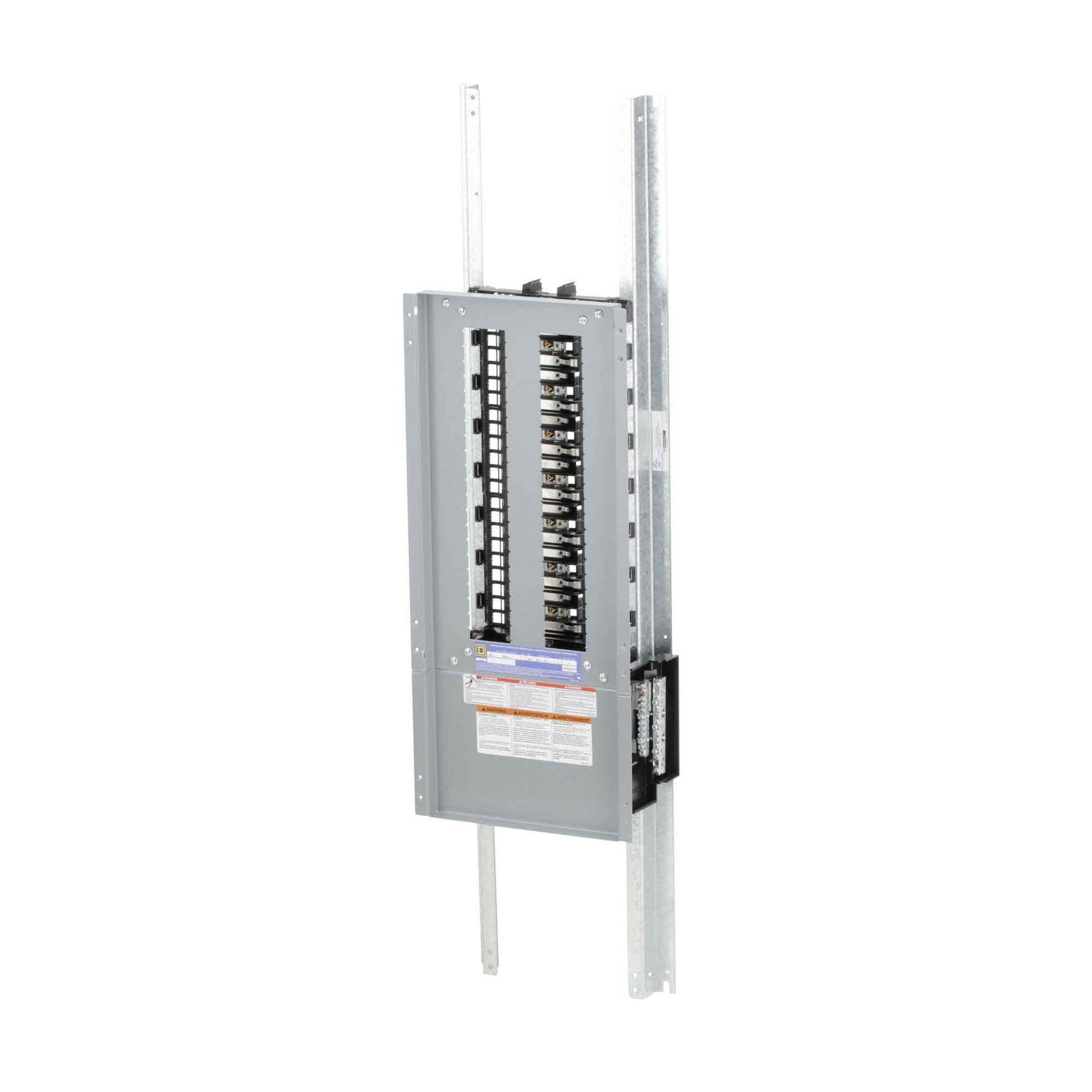 NQ Panelboard interiors can be used for applications such as commercial buildings, industrial buildings, stadiums, and offices. NQ Panelboards are versatile panelboards that feature a wide selection of circuit breakers, accessories, and ready to install kits. NQ Panelboard interiors are field convertible to top or bottom feed. NQ Panelboards are convertible from main lug to main breaker. NQ Panelboards provide 200% rated neutrals for nonlinear loads. Some factory installed options are split bus, lighting contactors, compression lugs, surge protection devices, and phenolic nameplates. This interior provides protection for your commercial and industrial applications. The main lugs are rated at 400A, 240 VAC 3 phase or 48 VDC. Interior has an interrupt current rating of up to 65 kA. This interior is for a 4 wire system with 42 spaces and has an aluminum bus bar. Interior is for QOB, QOBVH and QHB branch circuit breakers. Lug connections will accept two 1/0 AWG to 750 kcmil aluminum wire. Interior is 45 inches tall and 10.44 inches wide. This NQ panelboard interior is UL listed and CSA certified.