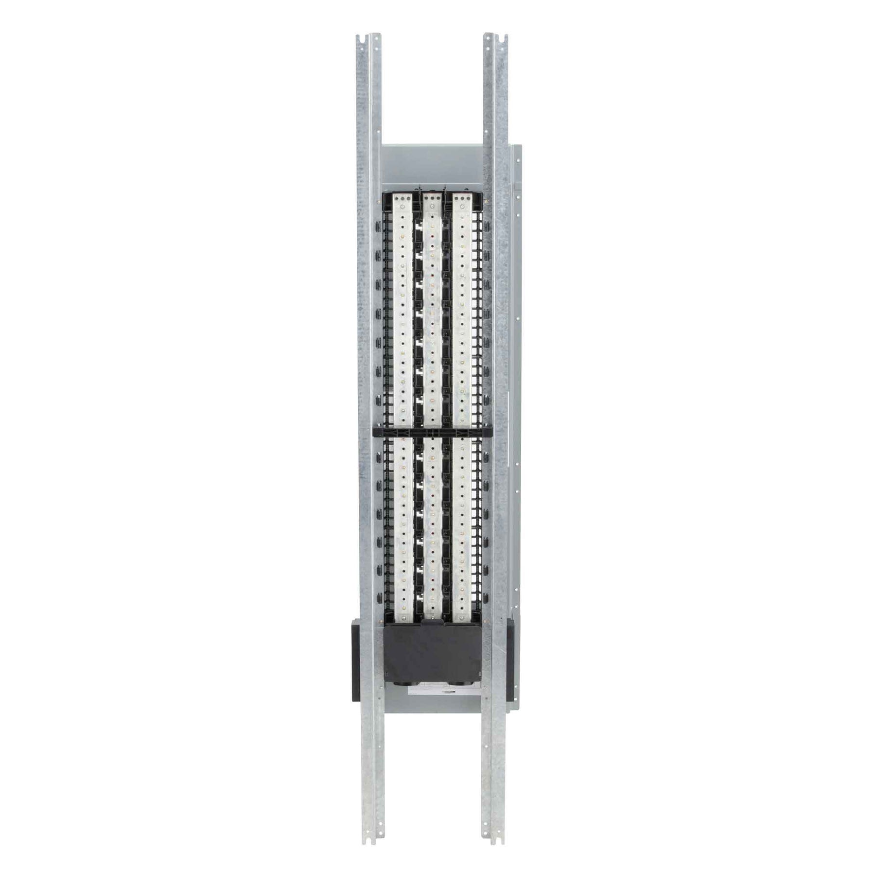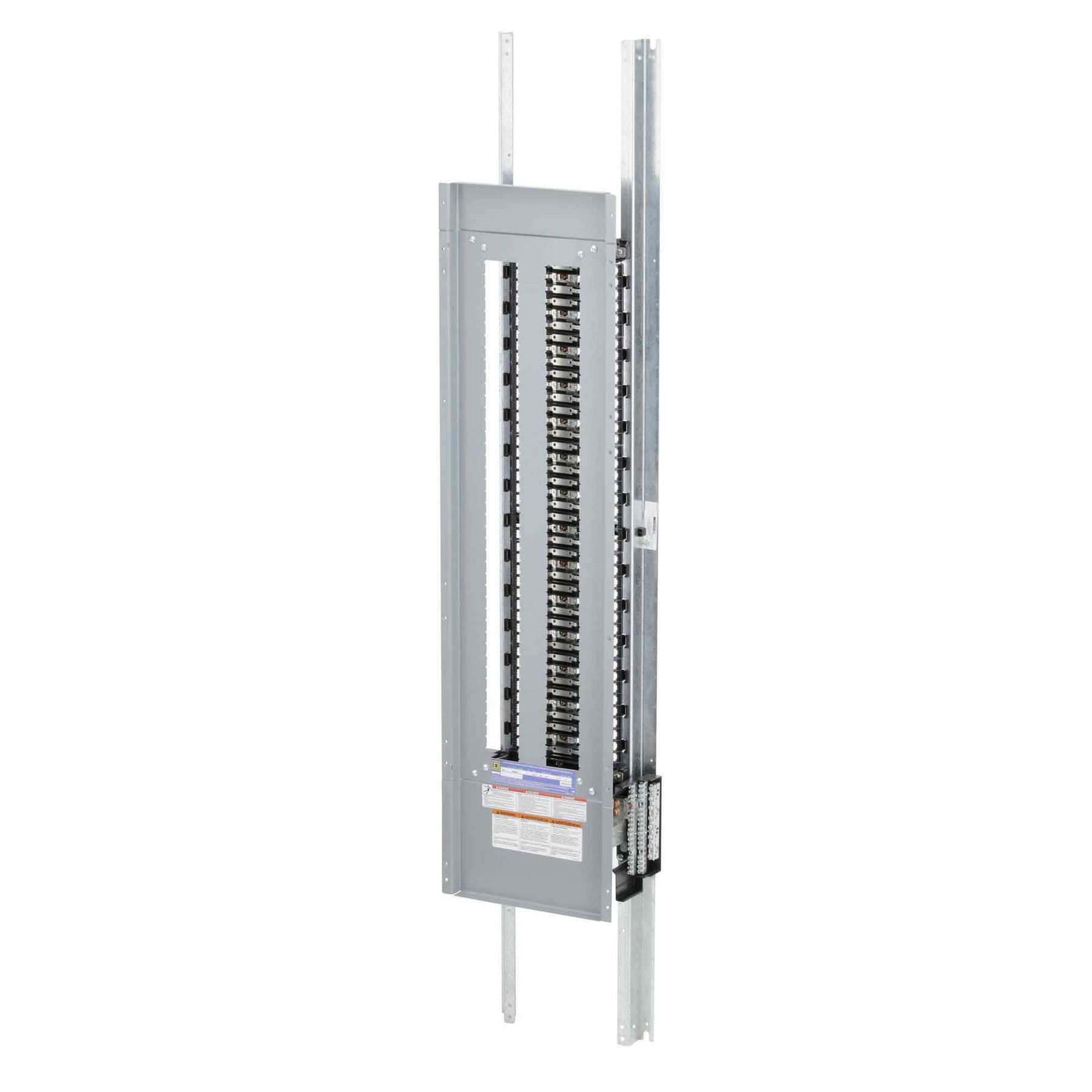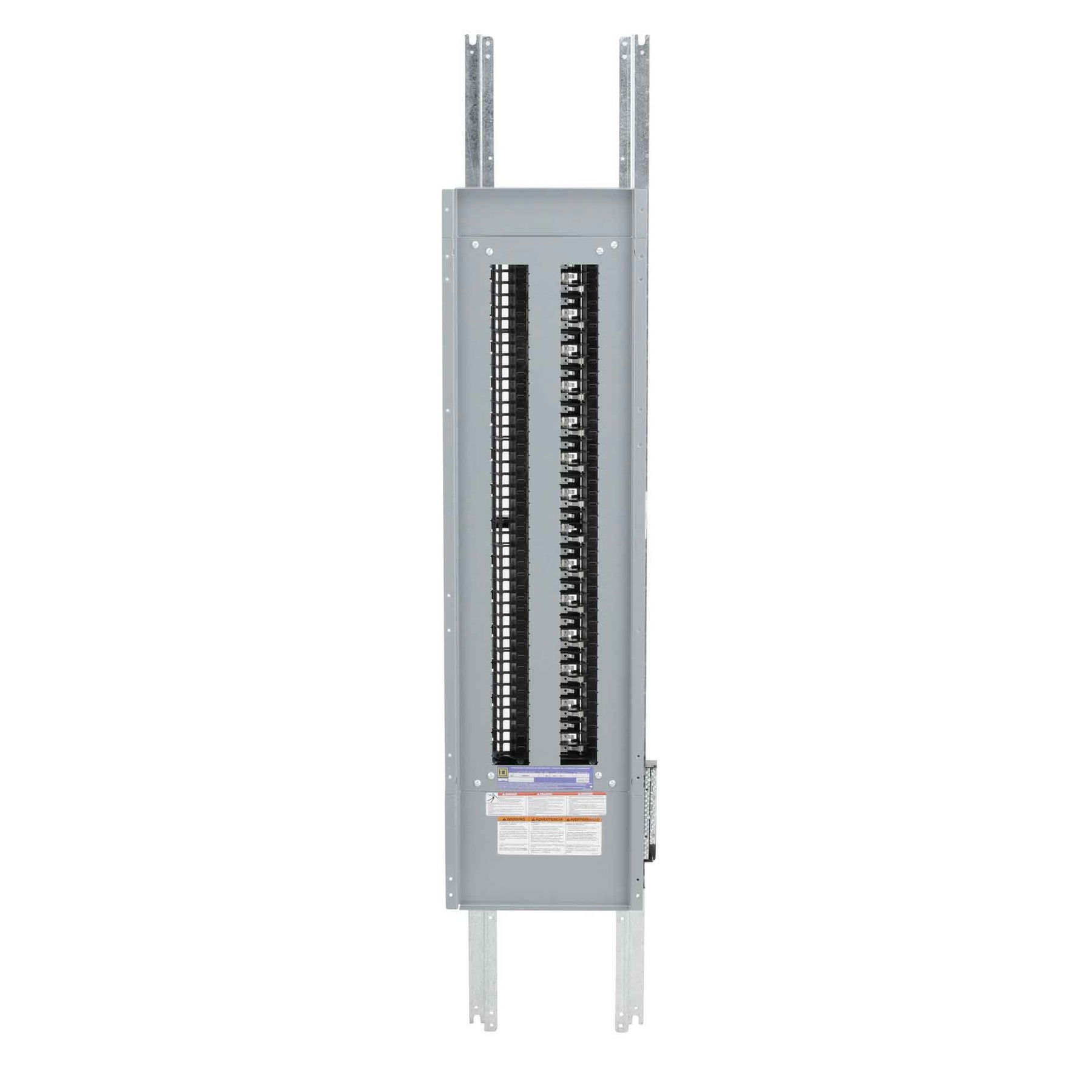 NQ Panelboards are versatile panelboards that feature a wide selection of circuit breakers, accessories, and ready to install kits. NQ Panelboards provide 200% rated neutrals for non-linear loads. NQ Panelboards are convertible from main lug to main breaker. Interior has a maximum voltage rating of 240 VAC and 48 VDC. This NQ Panelboard interior has a main lug and is rated at 400 A three phase. Interior has an interrupt current rating of up to 65 kA. This interior is for a 4 wire system with 84 circuits and has a copper bus bar. Interior is for QOB, QOBVH and QHB branch circuit breakers. This interior provides protection for your commercial and industrial applications. NQ Panelboard interiors are field convertible to top or bottom feed. Some factory installed options are split bus, lighting contactors, compression lugs, surge protection devices, and phenolic nameplates. Interior is 63 inches tall and 10.44 inches wide. Lug connections will accept 1/0 AWG to 750 kcmil aluminum wire. This interior is UL listed and CSA certified. NQ Panelboard interiors can be used for applications such as commercial buildings, industrial buildings, stadiums, and offices.