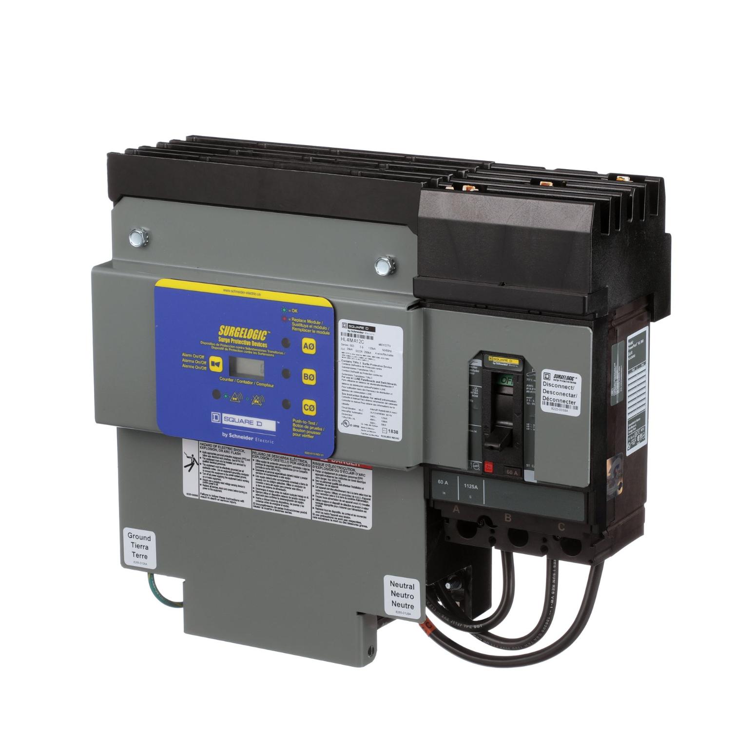 Surgelogic™ EMA and EBA series SPDs offer a full range of externally mounted surge suppression solutions. These units are designed to provide surge suppression from service entrance panels to point-of-use equipment. US and Canadian UL® Listed to the UL 1449 standard. Complies with requirements of NEC® Article 285 and CSA 22.2 No. 8- M1986 as appropriate. Complies with UL 96A 12th Edition Master Label requirements for Lightning Protection Systems. This Surelogic SPD device is a three phase, 4-wire grounded wye system that has a peak surge current rating of 160 kA. This device has operational voltage of 208Y/120 Vac and has a short circuit rating of 200 kA. This SPD is in a NEMA 2 enclosure that is 308.9 tall, 341.9 mm wide and 142.1 mm deep.
