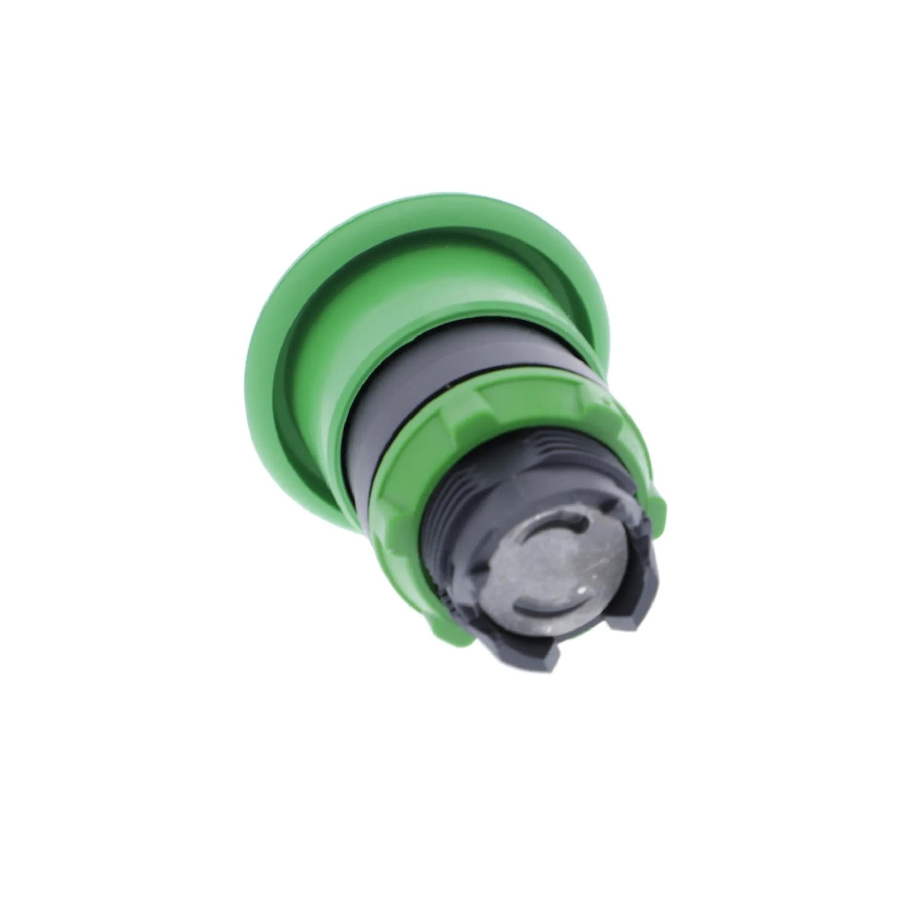 This Harmony XB5, 40mm mushroom green button head operates with a spring return mechanism. This 40mm mushroom shaped push-button head is ideal for situations where quick actions are required for a process or machine to function correctly or where operator movements require maximum ergonomy. It is easily combined with Harmony range of contact blocks to perform a large variety of control functions. It is clearly distinguishable visually at a distance thanks to a prominent 40mm mushroom shape. It is impact resistant, dust resistant, water resistant and vibration resistant thanks to its IP66 / IP67 / IP69 / IP69K. It has a plastic bezel, this makes it ideal for applications requiring good resistance to chemical agents and/or double electrical insulation. It is designed to fit in a standard 22mm cutout, ensuring compatibility when installing in pre-existing machinery. Its wide range of operating temperatures from -40°C to 70°C allows versatility in usage of product.