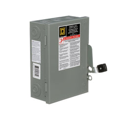 General duty safety switches are designed for residential and commercial applications where durability and economy are prime considerations. Typical loads include lighting, air conditioning, and appliances. They are suitable for use as service equipment when equipped with a factory-installed neutral assembly or field-installed service grounding kit, as applicable. General duty safety switches are UL® Listed, and meet or exceed the NEMA® Standard KS1. This Single Throw Safety Switch which has a rated current of 30A with a NEMA 1 degree of protection. This fusible disconnect switch comes with a neutral/earth strip 2 x 16 mm² 5 x 6 mm². This general duty switch is a 2-pole, 120 VAC has a short curcuit rating of 10kA and is surface mounted. This switch has lugs for an electrical connection which will accept AWG 14 AWG 6, copper & AWG 12 AWG 6, aluminium. This switch is certified to UL standards Dinemsions for this product are 9.25 in (H), 7.25 in (W), 3.63 in (D). General Duty safety switchs come with an 18 months warranty.